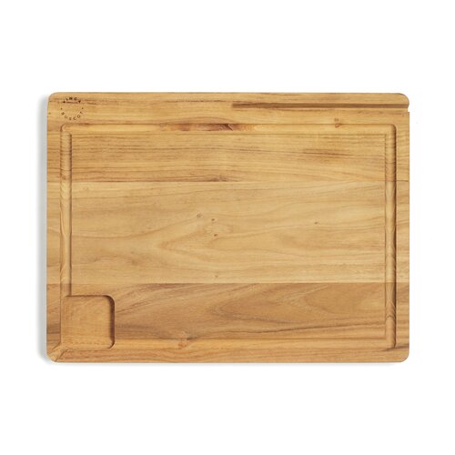 Schneid- / Servierbrett mit einer Fläche von 40 x 30 cm, das heißt, es ist groß genug zum Schneiden, Zubereiten und Servieren. Das Brett ist mit einer praktischen Halterung für Tablets oder Mobiltelefone ausgestattet, sodass Sie diese ganz einfach verwenden können, während Sie Ihren Lieblingsrezepten online folgen. Es gibt auch eine praktische Saftrinne, so dass die ausgetrenen Flüssigkeiten leicht durch das Ausgusselement ausgegossen werden können und unnötiges Verschütten vermieden wird. Hergestellt aus FSC®-zertifiziertem Teakholz.