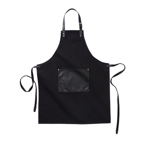 Stilechte und klassische Schürze aus dickem Baumwoll-Canvas mit diskreten Details aus PU. Verstellbare Schnalle oben und große Tasche vorne. Eine Schürze mit langer Lebenszeit, die mit der Zeit nur schöner wird. 400gr/m²