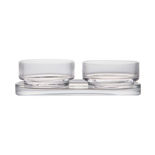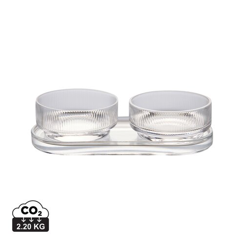 Ein Tapas-Set mit zeitlosem Design und klassischen, klaren Linien. Perfekt für alle Gelegenheiten, bei denen Sie kleine Gerichte, Snacks oder andere Beilagen stilvoll und elegant servieren möchten. Das Set besteht aus zwei Schalen und einem Tablett, die zusammen oder separat verwendet werden können. Hergestellt aus Kalk-Natron-Glas. Die Schalen fassen 250ml. Die Schalen sind spülmaschinenfest, ein eventuell nachträglich angebrachter Druck hält einer Spülmaschine jedoch natürlich nicht lange stand.