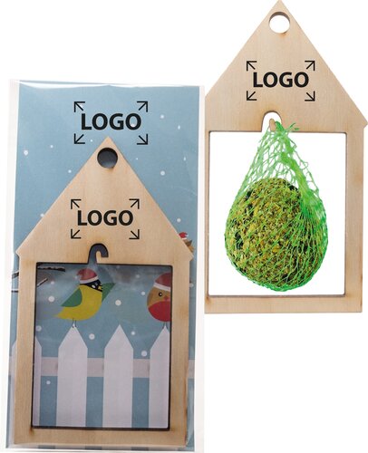 Das Vogelhäuschen aus Holz lässt sich überall aufhängen und mit einem Meisenknödel bestücken. Bald schon können die Vögel bei Ihrem Festmahl beobachtet werden. Die Karte kann mit Ihrem Eindruck versehen oder, ebenfalls ab 250 Stück, individuell gestaltet werden.