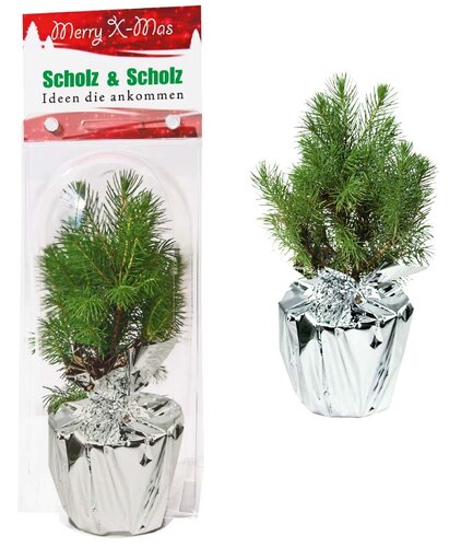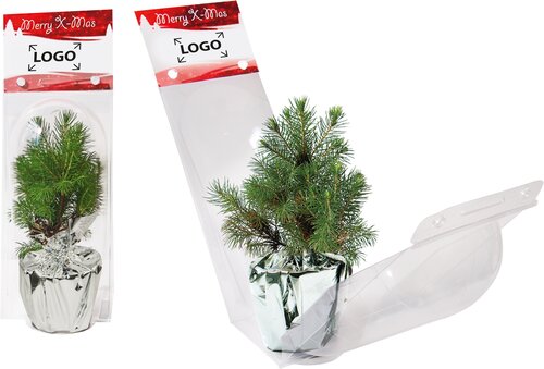 Perfekt geschützt ist diese kleine lebende Zuckerhutfichte, ca. 20 cm, in der transparenten Überreich-Box. Mit einer Topfflolie und einer Schleife in silber. Eine schöne Deko für die Adventszeit und zu Weihnachten. Platz für den Werbedruck ist auf dem Standardmotiv des Headers oder eine eigene Gestaltung, jeweils ab 100 Stück.