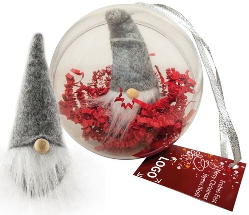 Der lustige Wichtel ist eine originelle Aufmerksamkeit und bleibt, auch nach der Weihnachtszeit, Ihren Kunden in Erinnerung. Ihr Werbeeindruck oder eine individuelle Gestaltung des Kärtchens ist ab 250 Stück möglich.