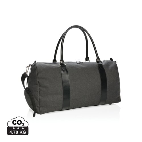 Moderne und minimalistische Wochenendtasche aus 600D Polyester mit PU Tragegriffen und bequemem Schultergurt. Großes Hauptfach mit viel Stauraum für Ihre Wochenendausrüstung oder Sportkleidung. Verbinden Sie Ihre Powerbank ganz einfach mit dem integrierten USB A Port und laden Sie Ihr Telefon oder Tablet - "on the go"! Zudem verfügt die Tasche über eine praktische Eingriffstasche an der Seite. PVC-frei.