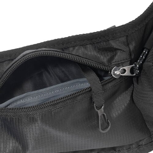 Schwarzwolf outdoor Sportgürteltasche, dank der Sie alle Ihre persönlichen Sachen beim Sport immer dabei haben. Die Gürteltasche beinhaltet eine große Fronttasche für eine Sportflasche, eine kleine Fronttasche mit Reißverschluss für Kreditkarten, etc. und eine hintere Reißverschlusstasche mit 19 × 10 cm Größe für ein Mobiltelefon. Die Gürteltasche kann auch als Umhängetasche getragen werden. Verpackt in einem Polybeutel mit Papieranhänger.