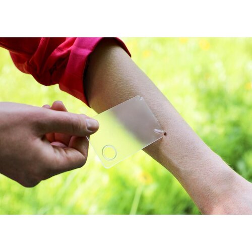 Diese praktische, flache Karte rückt den kleinen Blutsaugern auf die Pelle. Einfaches Entfernen von Zecken mittels der beiden Schlitze an den Ecken. Mit der integrierten Lupe lässt sich danach leicht feststellen, ob das Spinnentier komplett beseitigt wurde.